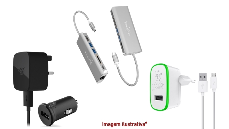 Cabos USB diversos modelos, Carregadores Turdo e Portáteis.